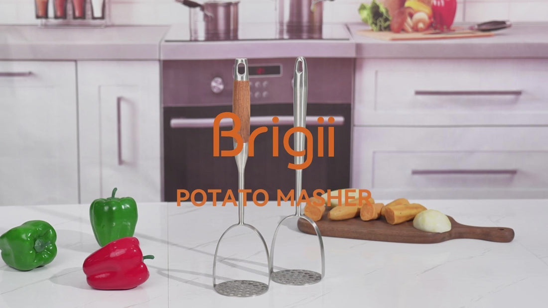 Brigii Potato Masher with Non-Slip Wooden Handle - PR02